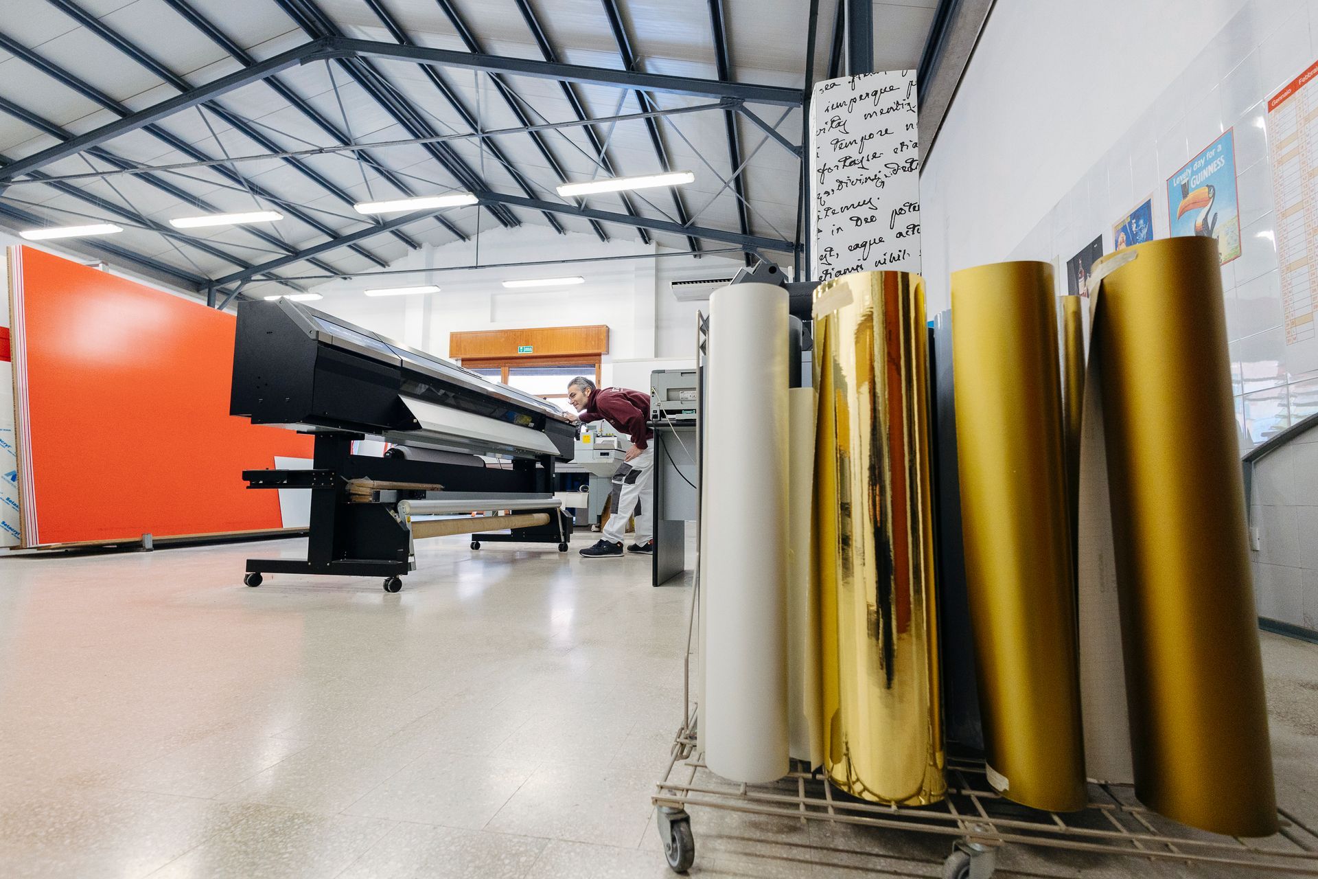 - Stampe per striscioni pubblicitari, tessuti per bandiere, canvas per fotoquadri, carta da parati, pvc magnetici, supporti vari retroilluminabili